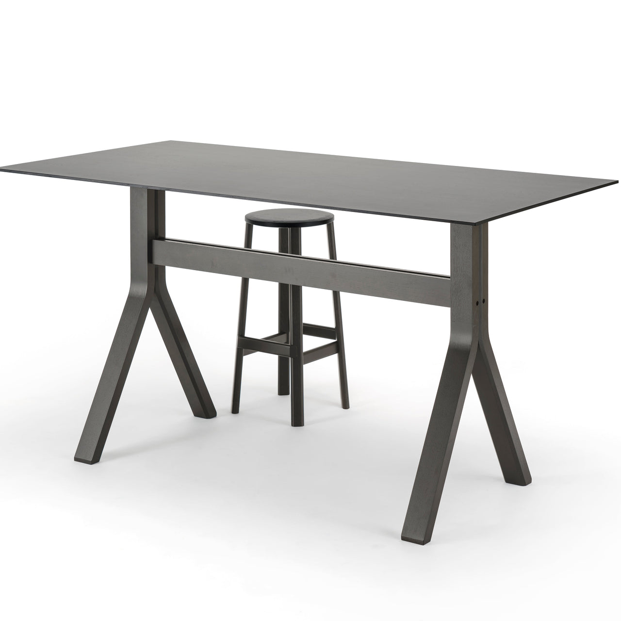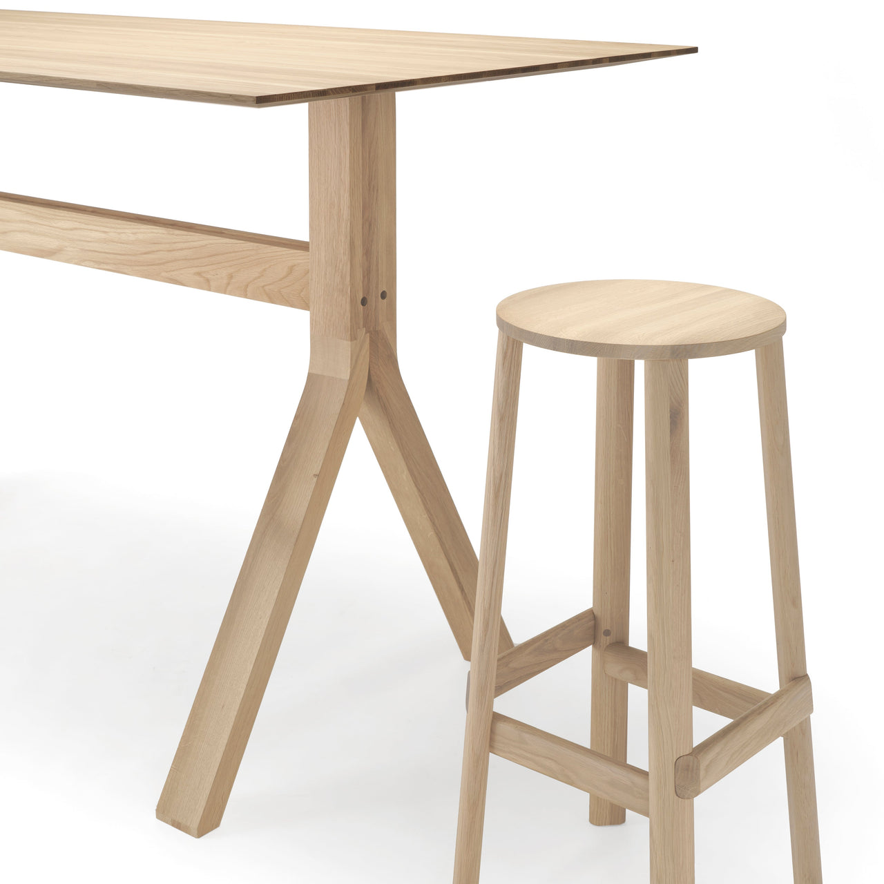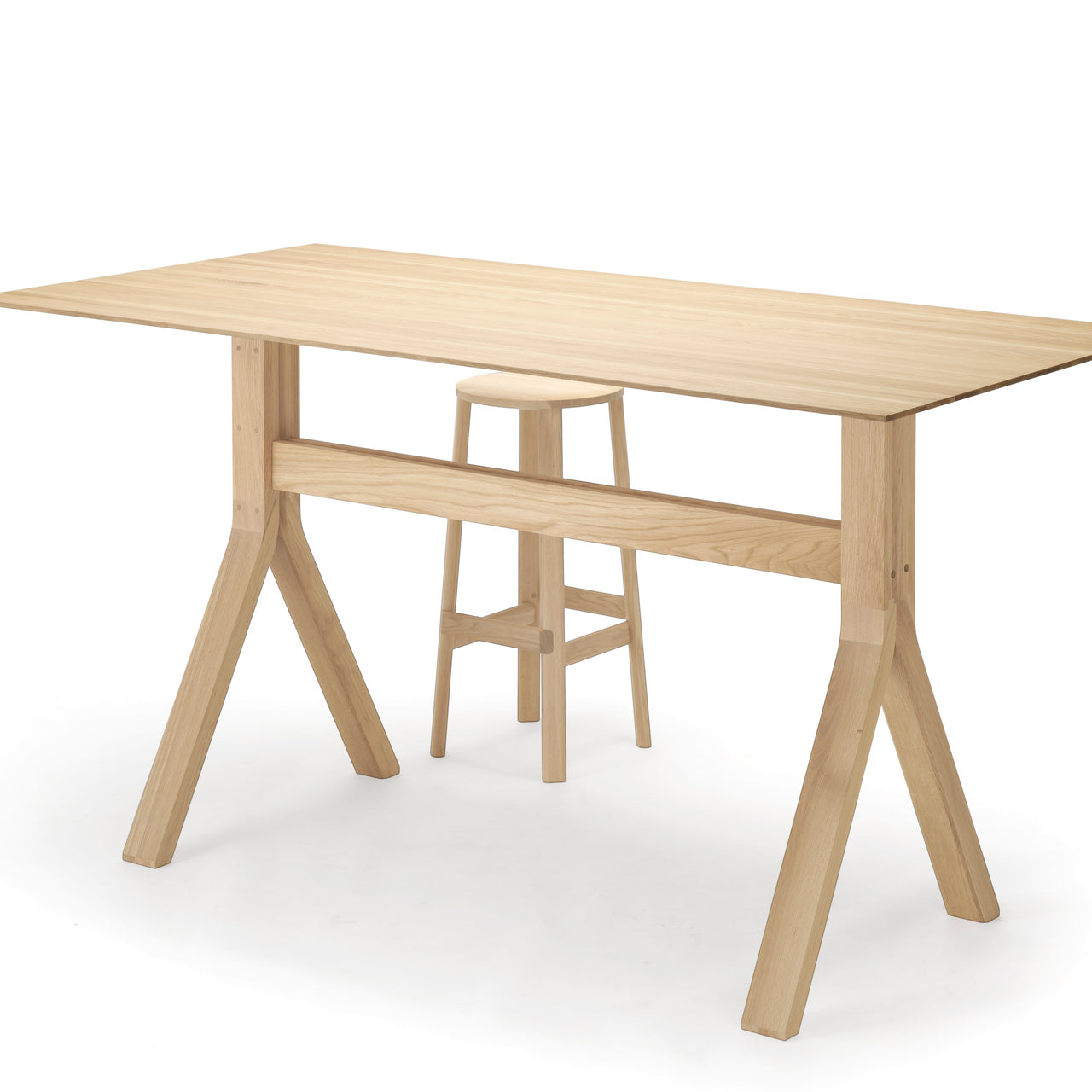 Berlin studio Geckeler Michels functionalist approach marries with a sense of Japanese minimalism in Spectrum High, conceived for dynamic working or for ad-hoc meetings for 4 to 6 people while standing or sitting on stools. With a distinctive trestle base, Karimoku New Standard's carefully crafted table is made from sustainably sourced, solid Japanese oak and offers the choice of a black or natural finish.