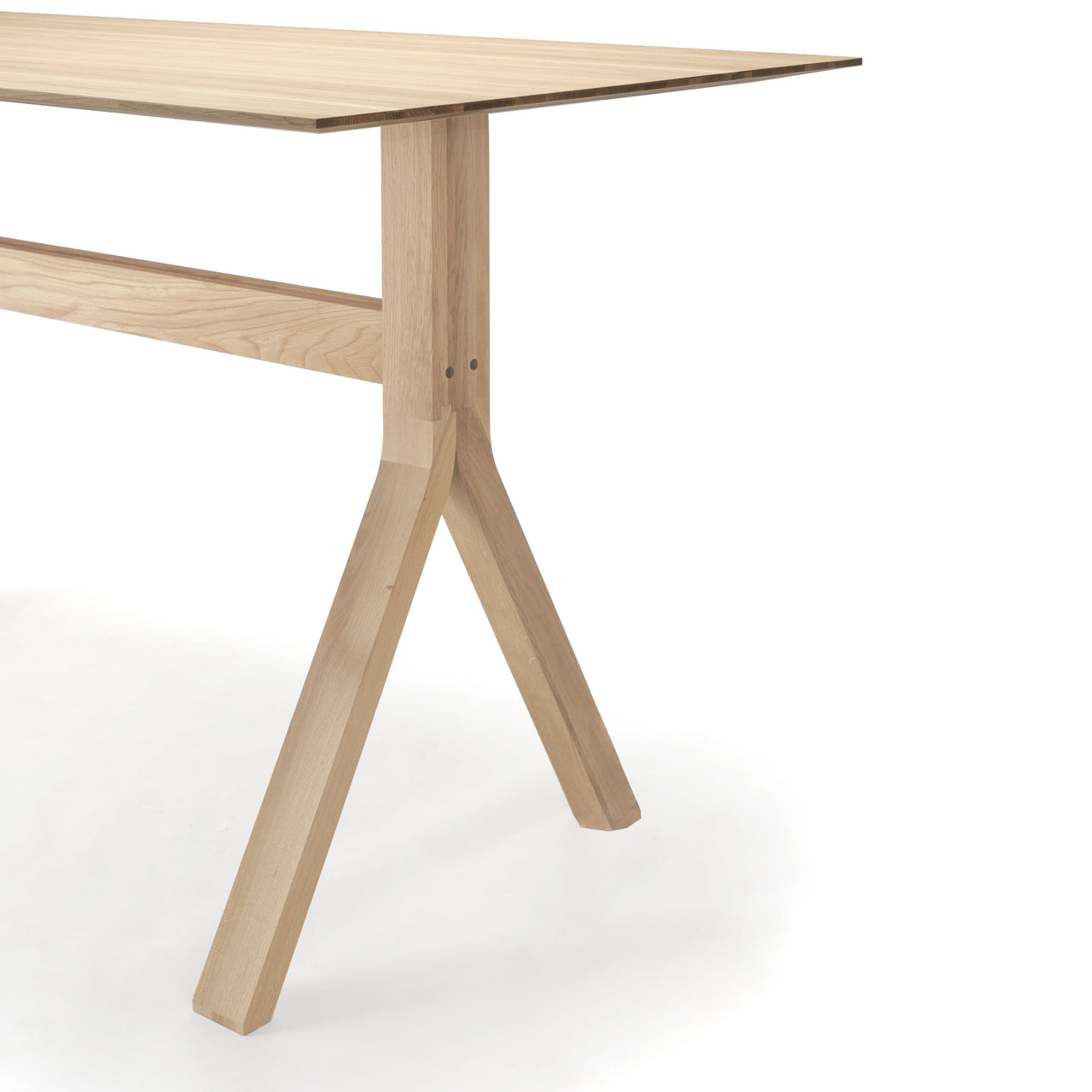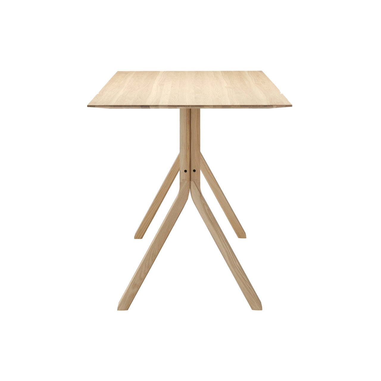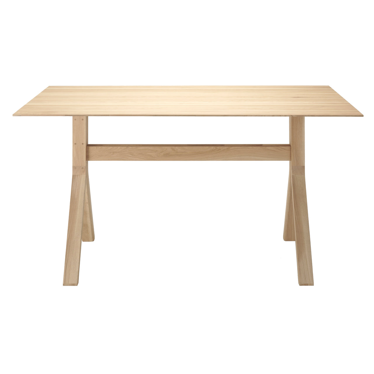 Berlin studio Geckeler Michels functionalist approach marries with a sense of Japanese minimalism in Spectrum High, conceived for dynamic working or for ad-hoc meetings for 4 to 6 people while standing or sitting on stools. With a distinctive trestle base, Karimoku New Standard's carefully crafted table is made from sustainably sourced, solid Japanese oak and offers the choice of a black or natural finish.