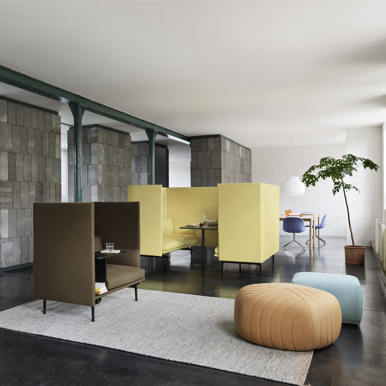 Offering the largest dimensions, this version of Highback Cabin pairs 2 Outline 3-seater sofas in an upholstered enclosure designed to create a sense of focus and immersion within a larger space. Muuto’s series combines soft, deep seated comfort and a clean-lined exterior for a dedicated solution that makes it an ideal fit in any open-plan locale, hospitality setting, workplace or public area.