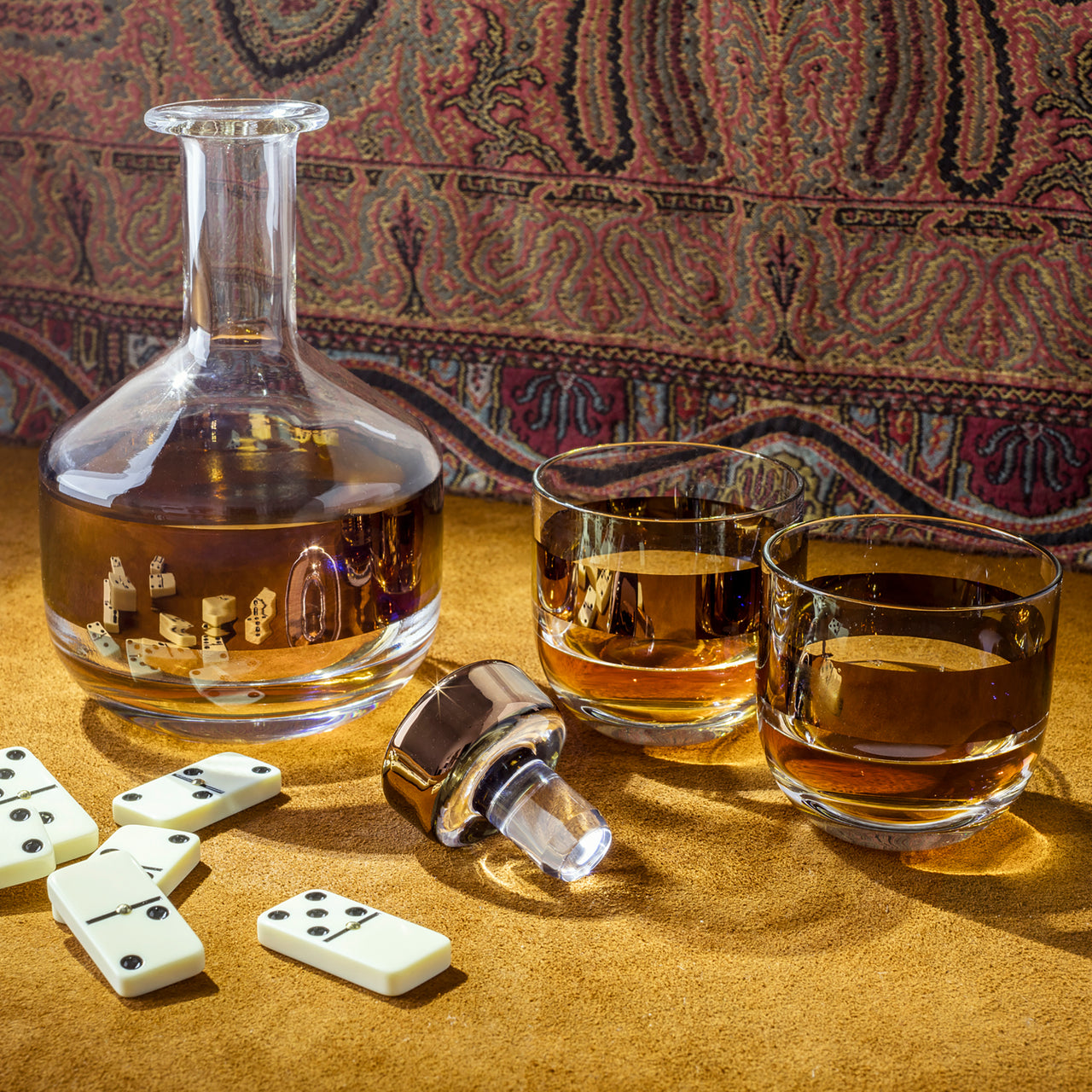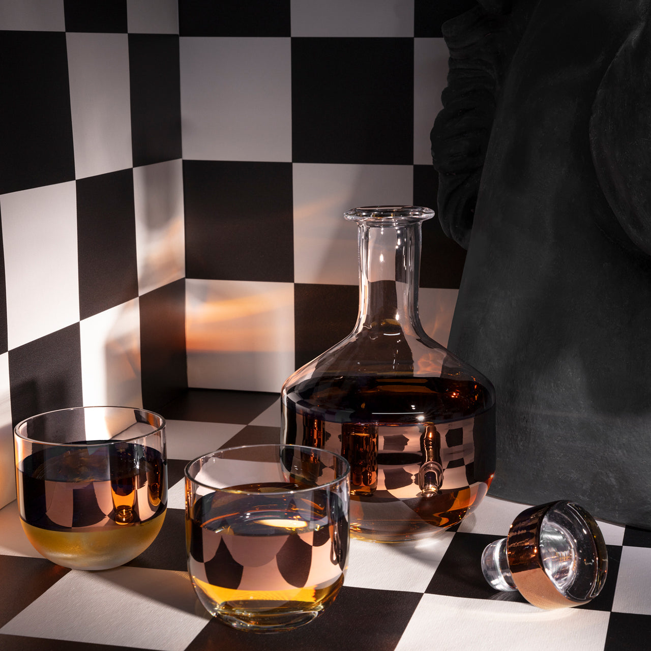 Mouth-blown and ornamented with hand-painted copper striping, Tom Dixon offers an elegant pair of whiskey glasses to accompany his Tank decanter. The duo brings a sense of festivity to cocktail hour in perfectly scaled drink-ware that is a pleasure to hold in the hand. Presented in gift-worthy packaging, it’s a gleaming addition to the ever-prolific designer’s celebration-minded collection.